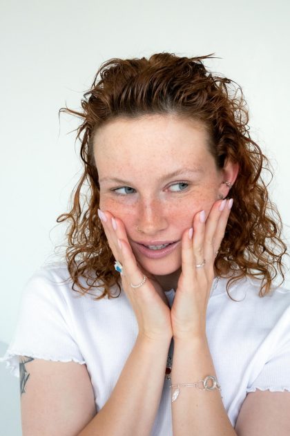Nie wymaga przekłucia – wystarczy, że delikatnie nasuniesz ją na małżowinę ucha i dopasujesz. Lekkość materiału sprawia, że nausznica trzyma się pewnie, nie obciążając ucha, a nieregularna powierzchnia dodaje jej głębi i nieco minimalistycznego wymiaru.